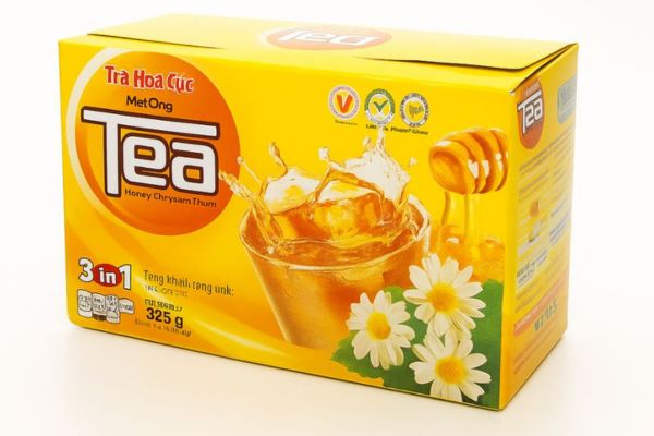 Tăng hiệu quả nhận diện thương hiệu: Hộp giấy được in ấn chuyên nghiệp sẽ truyền tải trọn vẹn câu chuyện thương hiệu, phong cách tự nhiên – thanh tao đặc trưng của trà hoa cúc.