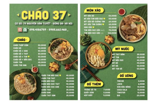 Có thể thêm phần “món mới hôm nay” hoặc “cháo dinh dưỡng theo mùa” để kích thích khách hàng quay lại.