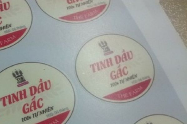 Với sản phẩm dầu gấc, nên ưu tiên decal nhựa hoặc decal trong để hạn chế bong tróc do dầu.