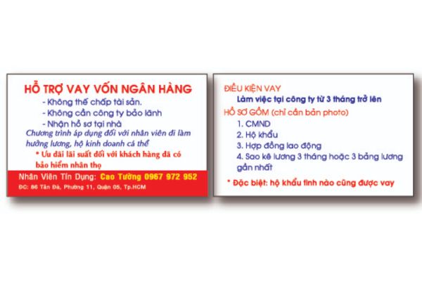 Nội dung cần có trên card visit cho vay tiền
