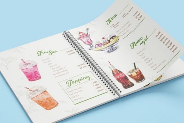 Mẫu menu đóng cuốn lò xo được nhiều nhà hàng, quán cà phê lựa chọn nhờ thiết kế tiện lợi, bền đẹp và dễ sử dụng. Với bố cục rõ ràng, hình ảnh sắc nét và khả năng lật mở linh hoạt, loại menu này mang đến trải nghiệm xem thực đơn thoải mái cho khách hàng. Đây chính là giải pháp tối ưu giúp nâng cao tính chuyên nghiệp và thu hút thực khách.