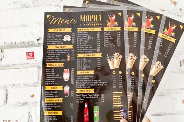 Đối với quán mới khai trương, menu ép plastic cũng giúp tạo ấn tượng chuyên nghiệp ngay từ đầu.