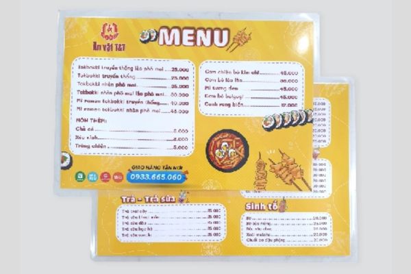 Mẫu menu ép plastic tại Hà Nội
