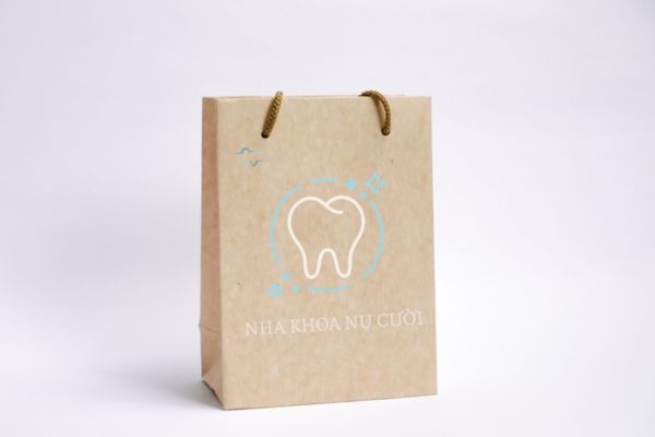 Túi giấy kraft tự nhiên: mang phong cách hiện đại, thân thiện môi trường, phù hợp nha khoa hướng đến hình ảnh xanh – sạch.